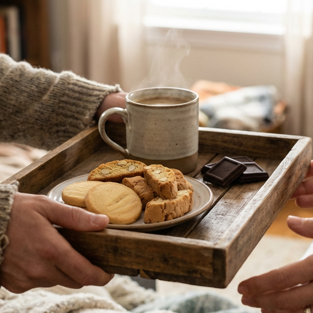 Manchmal muss es schnell gehen und ohne viel Tamtam. Für spontanen Besuch oder den kleinen Genussmoment zwischendurch brauchst du keine aufwendigen Backkreationen. Eine Tafel hochwertige Schokolade, egal ob dunkel oder Vollmilch, und ein paar klassische Butterkekse oder Cantuccini sind eine sichere Bank. Diese Snacks sind lange haltbar, passen zu vielen verschiedenen Kaffeeprofilen und sorgen im Handumdrehen für eine kleine, feine Auszeit.