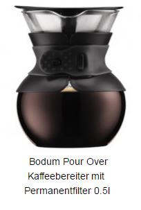 Diesen Kaffeebereiter kennt so gut wie jeder. Dabei wird ein tassenähnlicher Handfilter auf die Kaffeekanne gesetzt und mit Filterpapier bestückt. Anschließend wird Kaffeepulver in den Filter hineingefüllt und langsam heißes Wasser darüber gegossen. Diese klassische Pour-Over-Methode ist wieder im Kommen. Den Handfilter aus Porzellan oder Keramik gibt es in verschiedenen Größen – für Kannen beziehungsweise für mehrere Tassen oder für nur eine Tasse. Das passende Filterpapier ist im Handel erwerbbar. Mit dem Handfilter haben Sie die Kaffeezubereitung selbst in der Hand und obendrein sieht das Teil auch noch hübsch aus. Traditionalisten kaufen bevorzugt einen Handfilter aus geschmacksneutralem Porzellan.